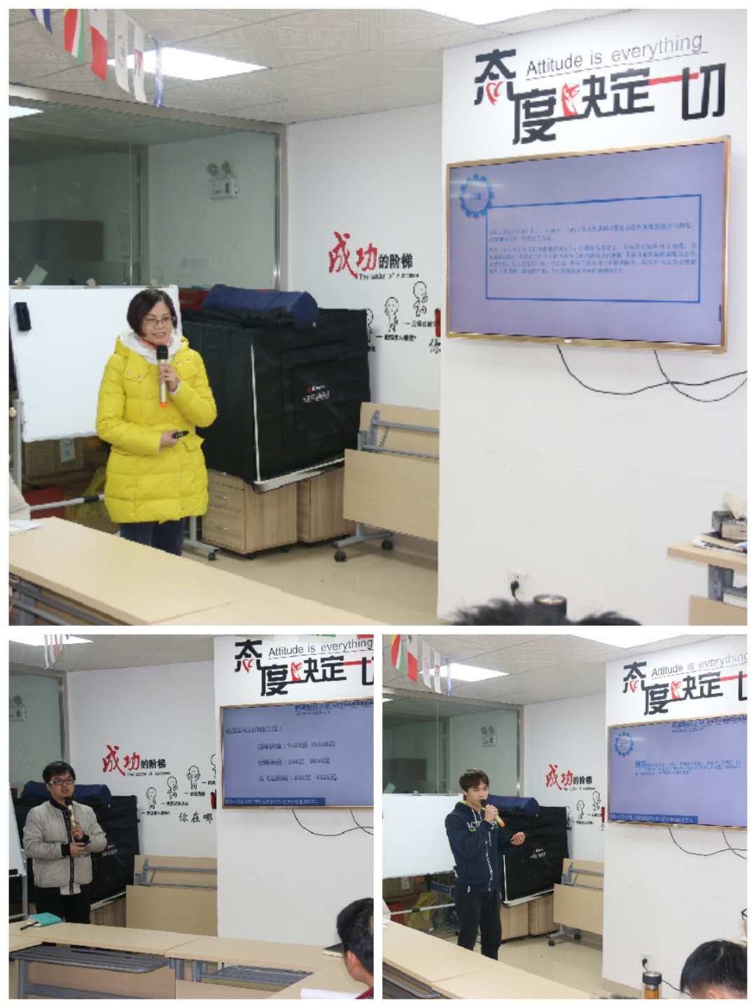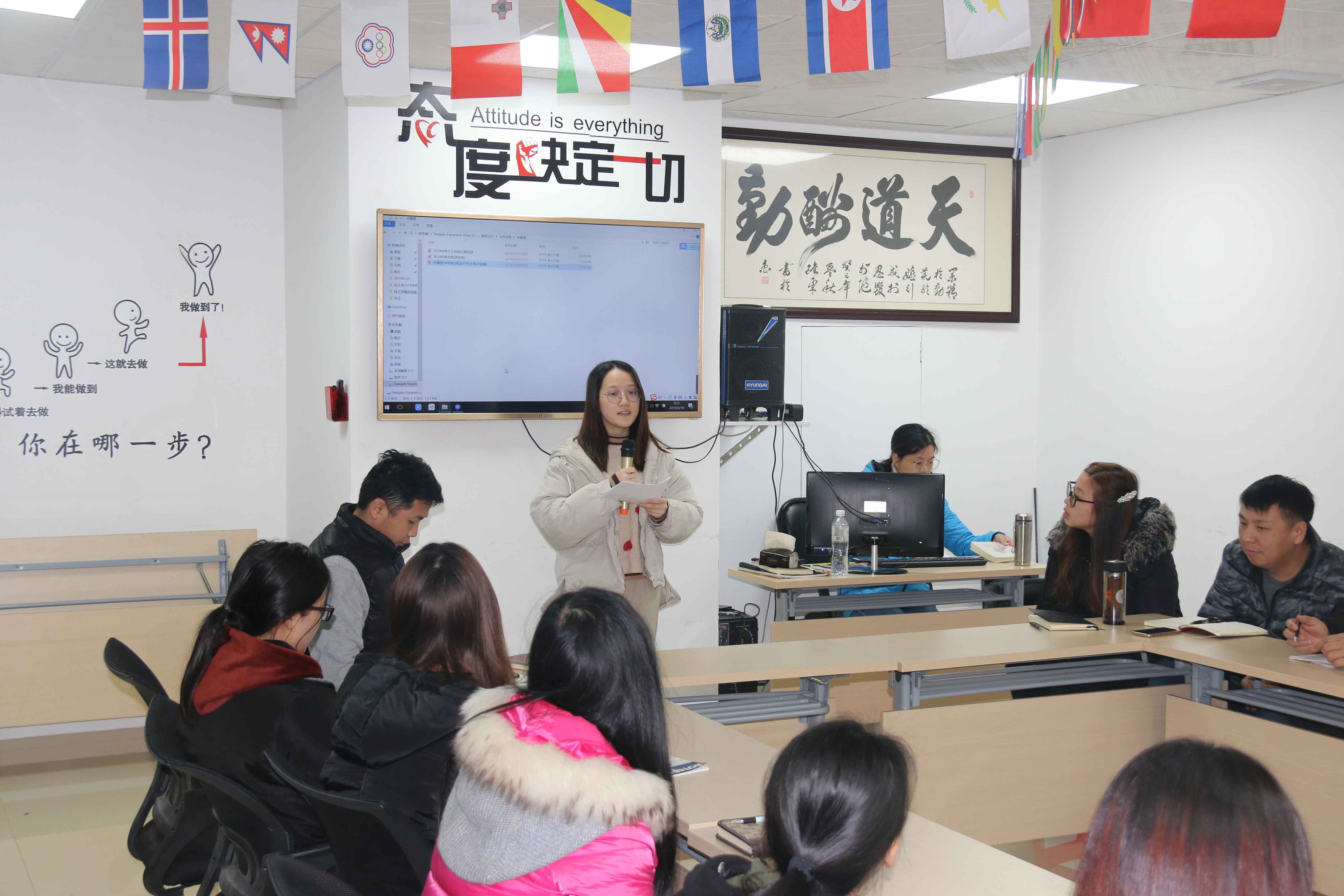 仓储部、销售部、外贸部、电商部各部门代表给大家做2018年工作总结报告,根据分析来制定2019年的规划,明确目标才能努力前行。